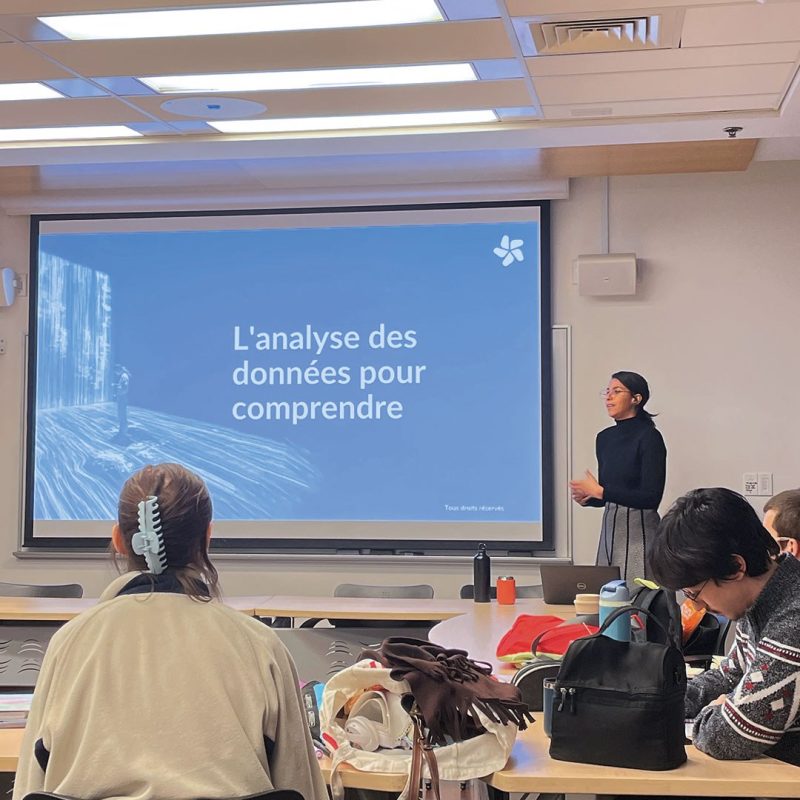 - A three-hour workshop entitled “Behind the scenes in research: decoding, collecting and analyzing to understand” given by Leyla Lardja, our Research and Innovation Manager. This workshop introduced the group to documentary research, data collection techniques and data analysis. It elicited many reactions from the students to the topics covered, making for a dynamic and rich exchange!