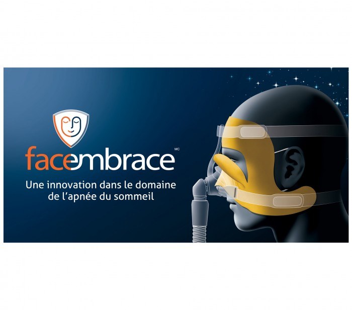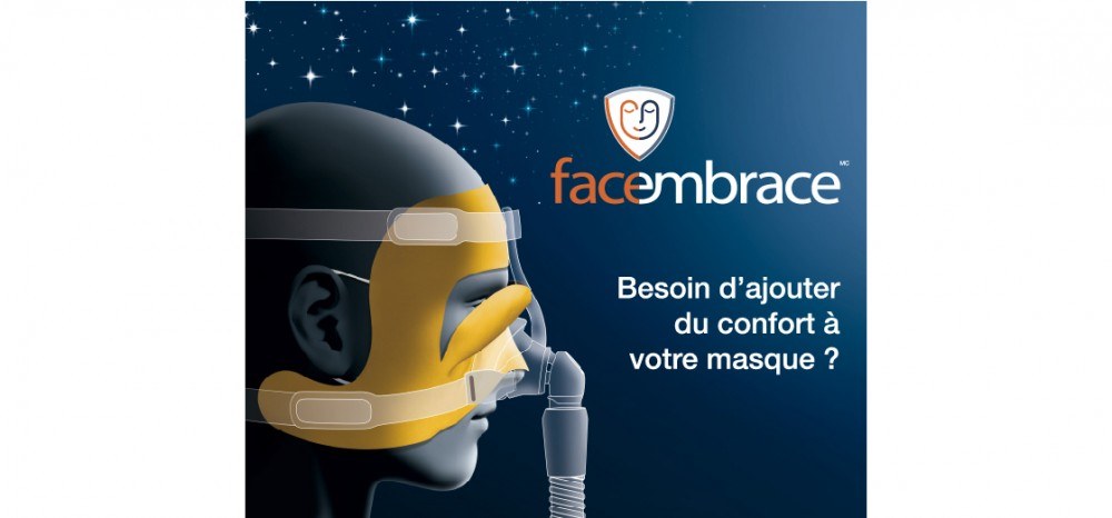 Today, about 936 million people in the world suffer from sleep apnea*. Of these, 80% would not be diagnosed, and only 45% of people diagnosed continued their CPAP therapy three years after their diagnosis, among other things because of the discomforts of wearing a respirator on a daily basis. The Facembrace™ is a unique and revolutionary comfort accessory that allows patients to continue their CPAP therapy in comfort and benefit from the many positive impacts of this therapy on their health.